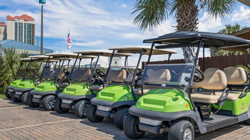 Outdoor enthusiasts will love the five-acre stocked lake, ideal for fishing or simply relaxing by the water. Many guests spend their mornings casting for bass before taking a short walk to the beach or the nearby bike trails.The resort also offers golf cart and e-bike rentals, making it easy to explore both the property in style.