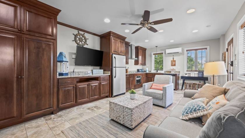 For those who want to stay active, the resort’s indoor heated pool, hot tub, and fitness center offer comfort throughout every season. The 6,000-square-foot clubhouse serves as a welcoming space for owners and guests to gather, watch a game, or host private events. With high-speed internet, ample seating, and a modern coastal design, it perfectly complements the resort’s upscale feel.